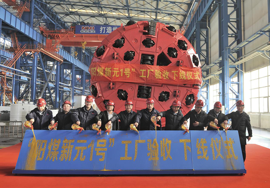 “陽煤新元1號”出廠前,陽煤新元公司董事長、總經(jīng)理管俊才,浙江華越董事長李步奏,山東新礦集團技術(shù)研究中心副主任尹承山等來賓齊聚北方重工,慶?!瓣柮盒略?號”煤礦巖巷全斷面掘進機正式下線。在試車驗收現(xiàn)場,管俊才等來賓對北方重工在盾構(gòu)機領(lǐng)域的技術(shù)研發(fā)實力和制造能力給予高度評價,對驗收結(jié)果滿意。驗收結(jié)束后,北方重工總裁助理張斌與來賓共同澆筑驗收“鎏金沙”紀念板?!瓣柮盒略?號”之所以在2個月的時間順利產(chǎn)成,正是源于北方重工實施混改釋放出來的活力,張斌對各位來賓發(fā)出感慨。