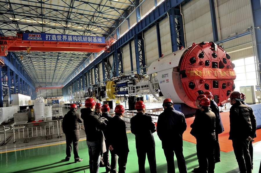 Ф4.53米“陽煤新元1號”煤礦巖巷全斷面掘進機是公司“守信工程”的重點項目。隨著生產(chǎn)指揮中心一個個指揮調(diào)度指令下達,拉開了上下同心一盤棋大兵團作戰(zhàn)的序幕。隧道工程技術(shù)公司、工藝研究部率先行動起來,提前做好技術(shù)準備、優(yōu)化工藝等工作,為后續(xù)生產(chǎn)提供技術(shù)支持;采購總公司調(diào)動一切資源,滿足配套供應;結(jié)構(gòu)件分廠、重大部件分廠、隧道掘進裝備分廠積極動員,凝聚員工力量,形成強大合力,提前1天完成裝配試車,打了一場漂亮的“守信工程”攻堅戰(zhàn)。