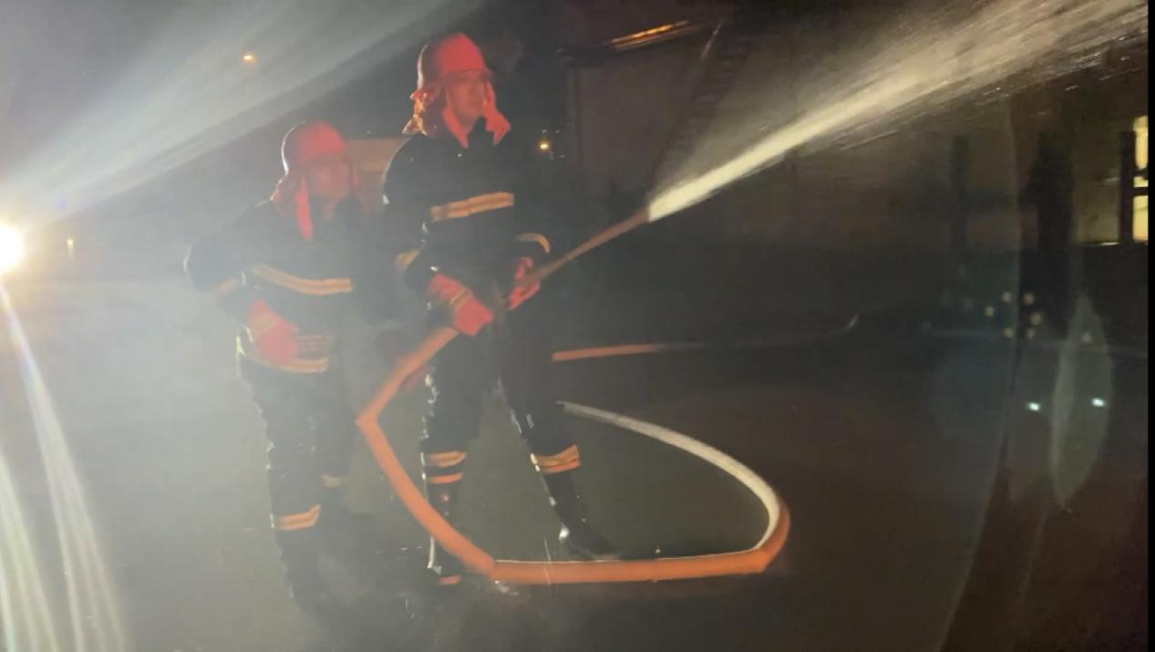 夜間消防預案演練演練地點設置在北方重工露天作業(yè)區(qū)。保安員在廠區(qū)巡查時發(fā)現(xiàn)露天作業(yè)區(qū)廢舊木材、可燃雜物堆放處發(fā)生“火情”,并伴有明火及濃煙。巡查人員發(fā)現(xiàn)“火情”立刻按下手動報警按鈕,同時撥打廠區(qū)電話進行報警,保衛(wèi)部人員接警后,立即向北方重工值班人員報告“火情”,請求啟動廠區(qū)夜間滅火、應急疏散預案。同時,他們立即通知微型消防站全體人員形成第一滅火力量,前往“火情”現(xiàn)場進行撲救。按照預案相關處置程序,組建火場臨時指揮部,指揮部成員立刻啟動應急預案,并到達現(xiàn)場向各行動組下達滅火救援命令。