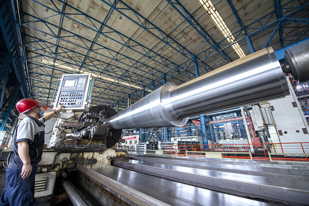 北方重工重大部件分廠員工正在加工旋回破碎機(jī)主軸