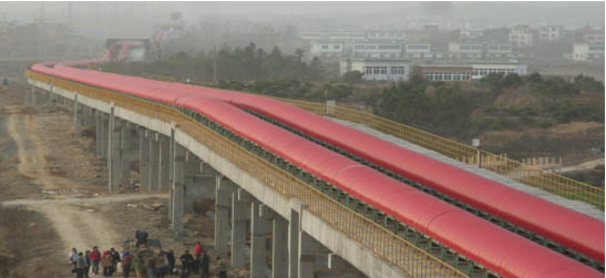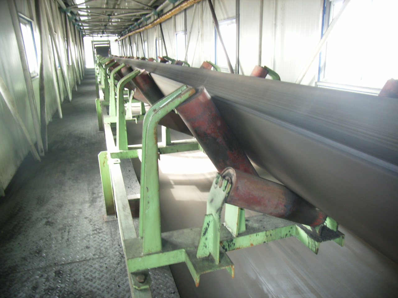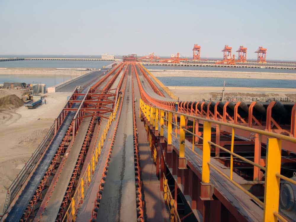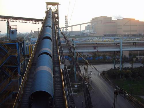 我公司所生產(chǎn)的帶式輸送機,首先是運行可靠,在許多需要連續(xù)運行的重要的生產(chǎn)單位,如發(fā)電廠煤的輸送,鋼鐵廠和水泥廠散狀物料的輸送,以及港口內(nèi)船舶裝卸等均采用帶式輸送機。其特點動力消耗低,使用過程中阻力小,對貨物的磨損和破壞均小,生產(chǎn)效率高。不僅在煤廠、鋼鐵廠和礦廠運用輸送機,還在小型隧道內(nèi)均可以使用,長度短則幾米,長可達(dá)10米以上,也可以架設(shè)在地面交通混亂和危險地區(qū)的上空。如在一點或多點受料.也可以向多點或幾個區(qū)段卸料,需要時,還能把各堆不同的物料進(jìn)行混合。